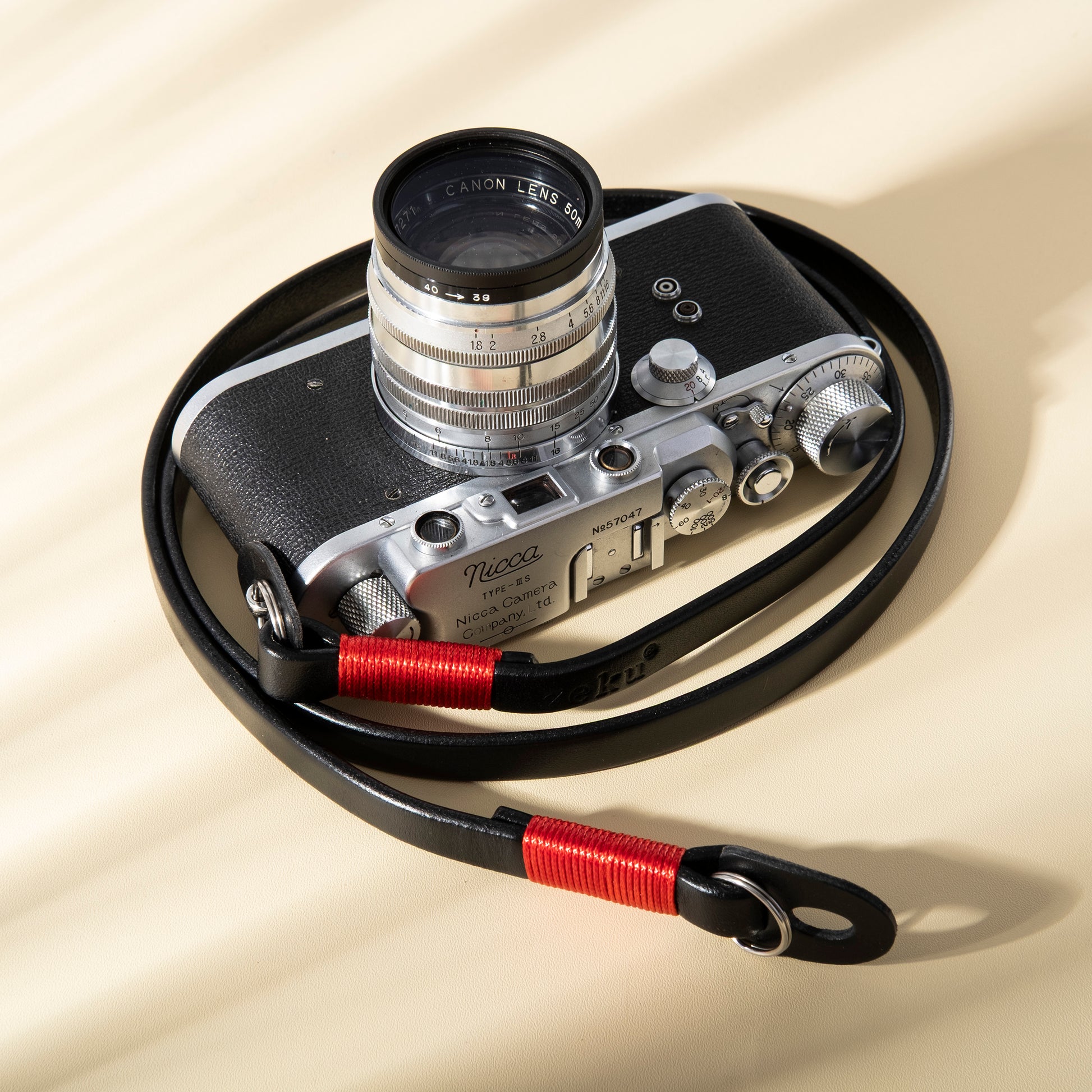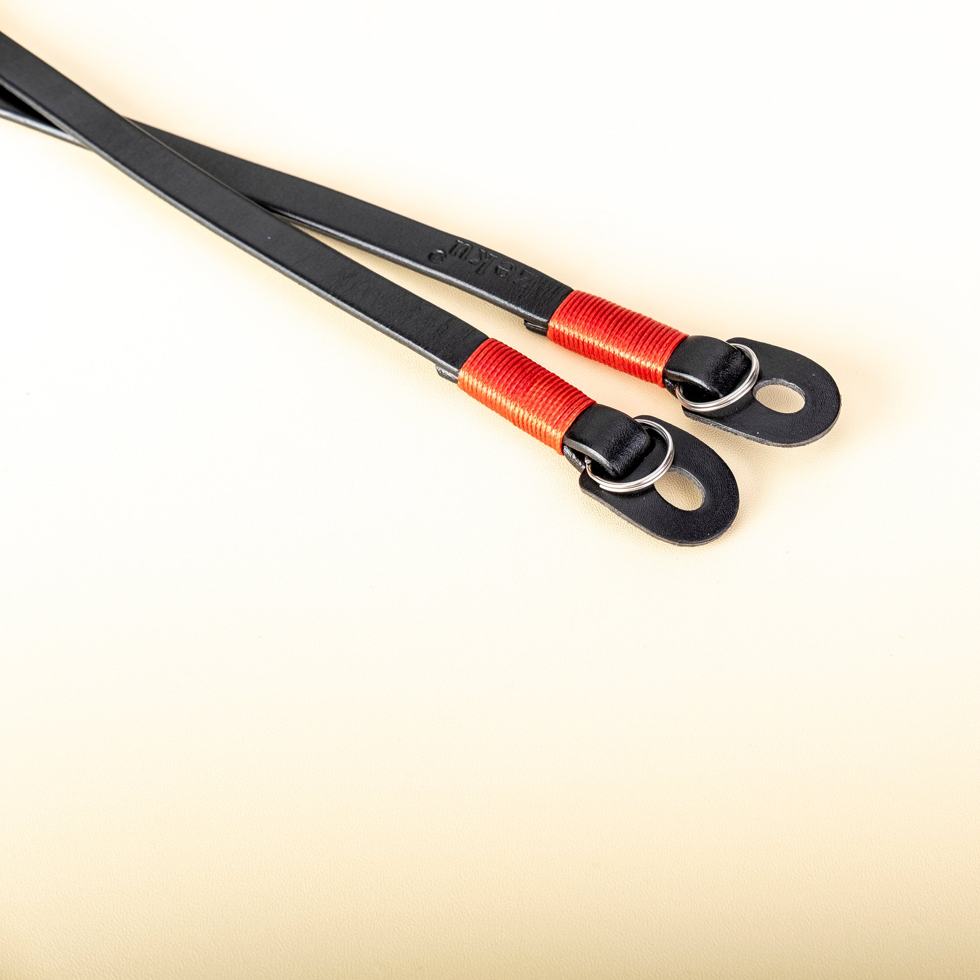 Schwarzer Kameragurt aus unbehandeltem Vintage-Rindsleder