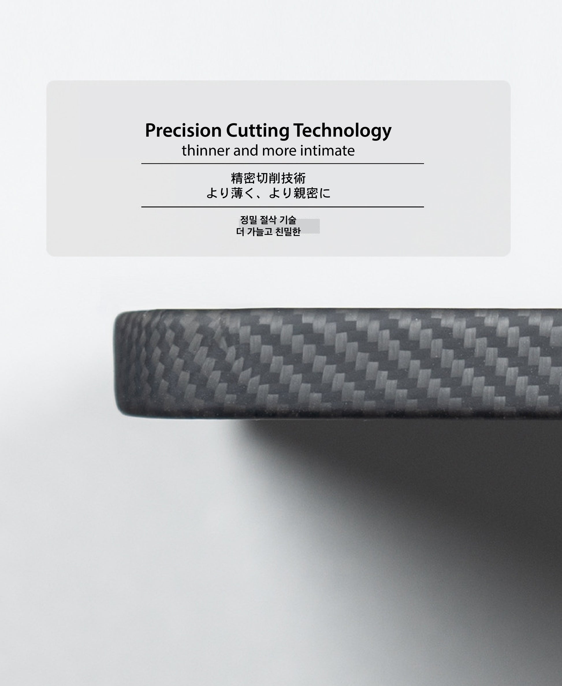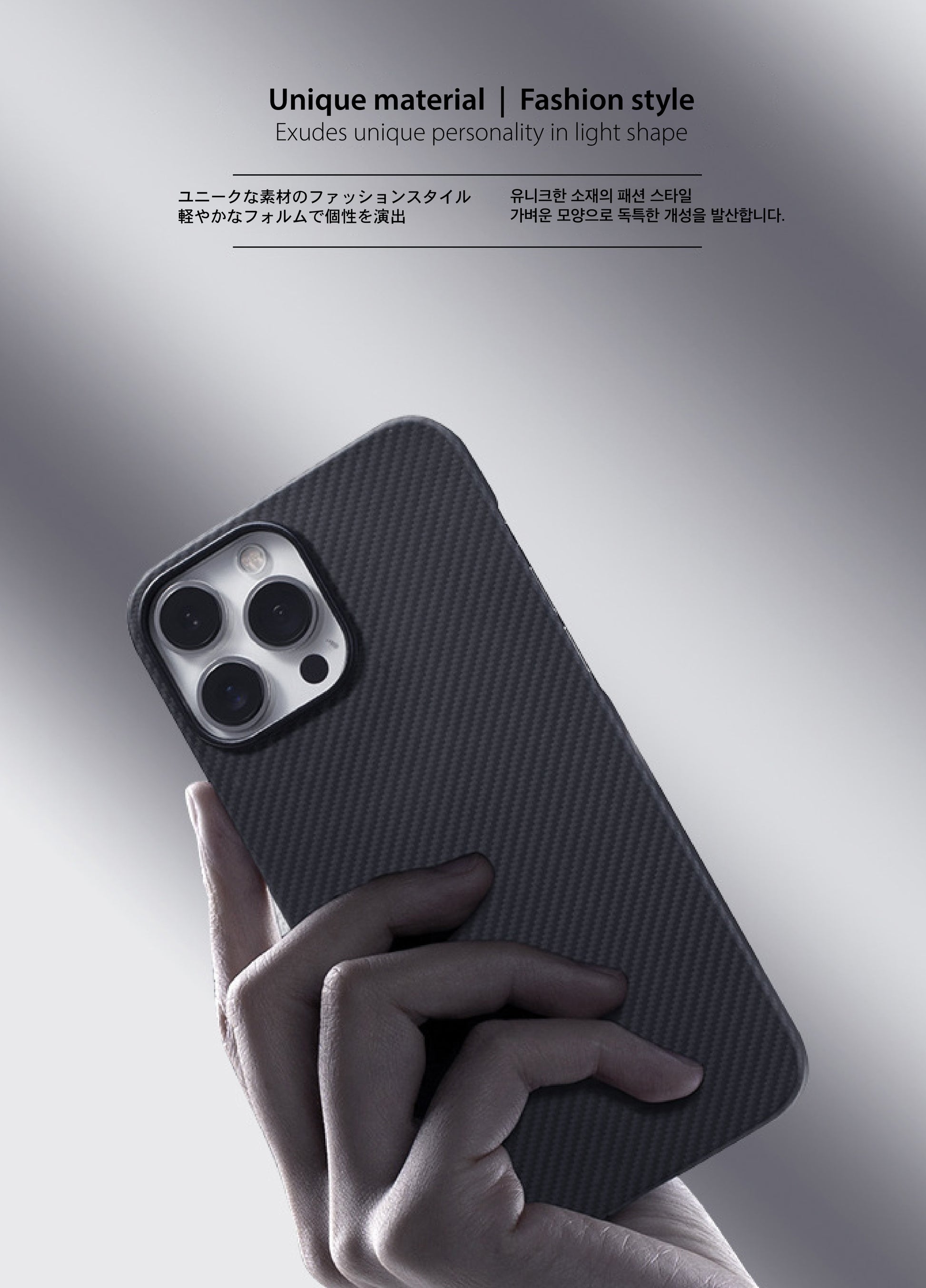 Engineered from aramid fiber, matte coated, non-slip light-weight for minimal protection. The case is compatible with thin magnets, does not interfere with cell phone signals, and is compatible with wireless charging.