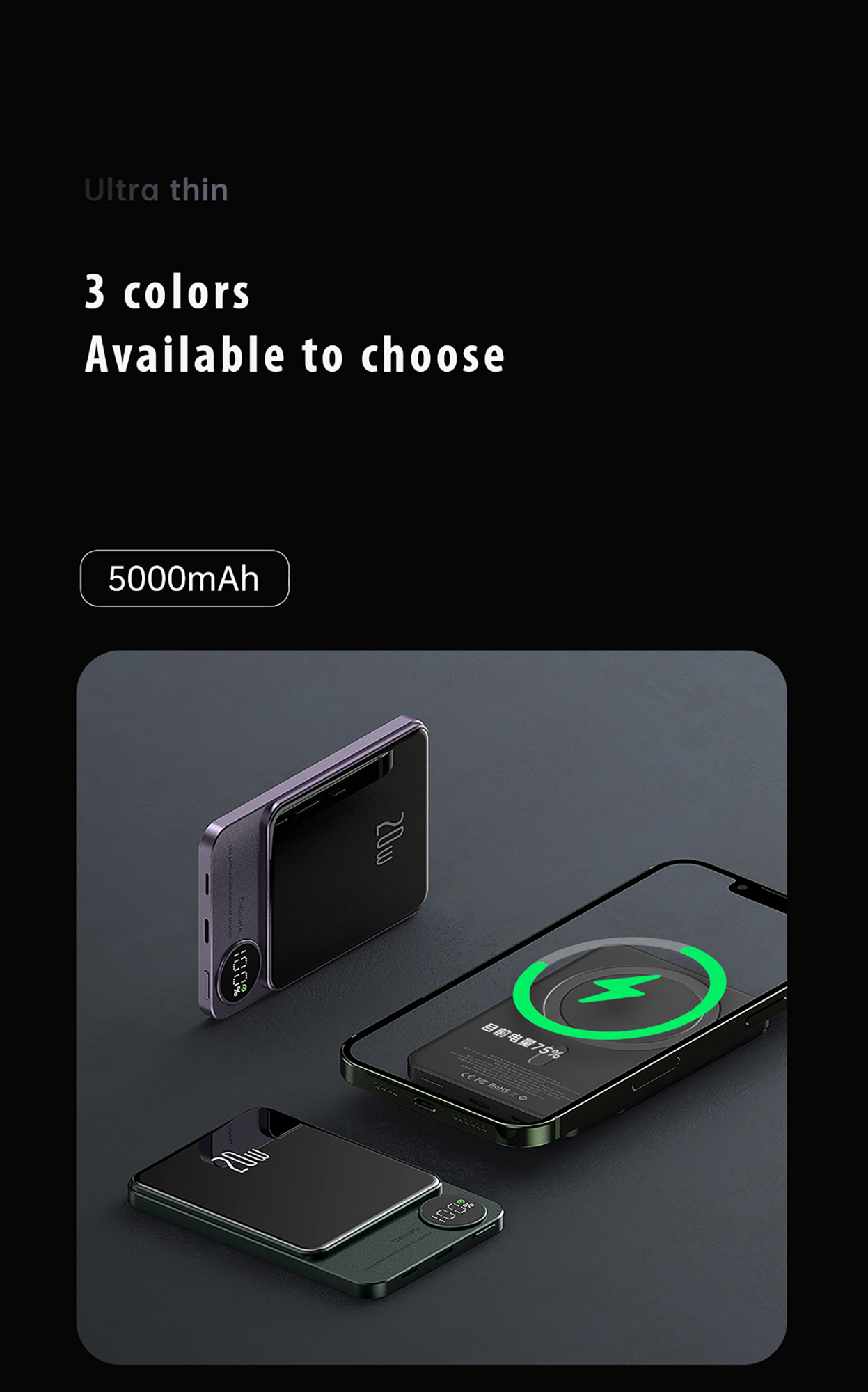 - ✅ 【輕薄便攜】機身纖薄輕巧,最大厚度僅為9毫米。材質:鋁合金和PU材質,5000mAh尺寸和重量: 68 x 104 x 10毫米/145克;10000mAh尺寸和重量:68 x 104 x 15毫米/145克。您可以輕鬆將其放入任何口袋,而不會感到笨重。